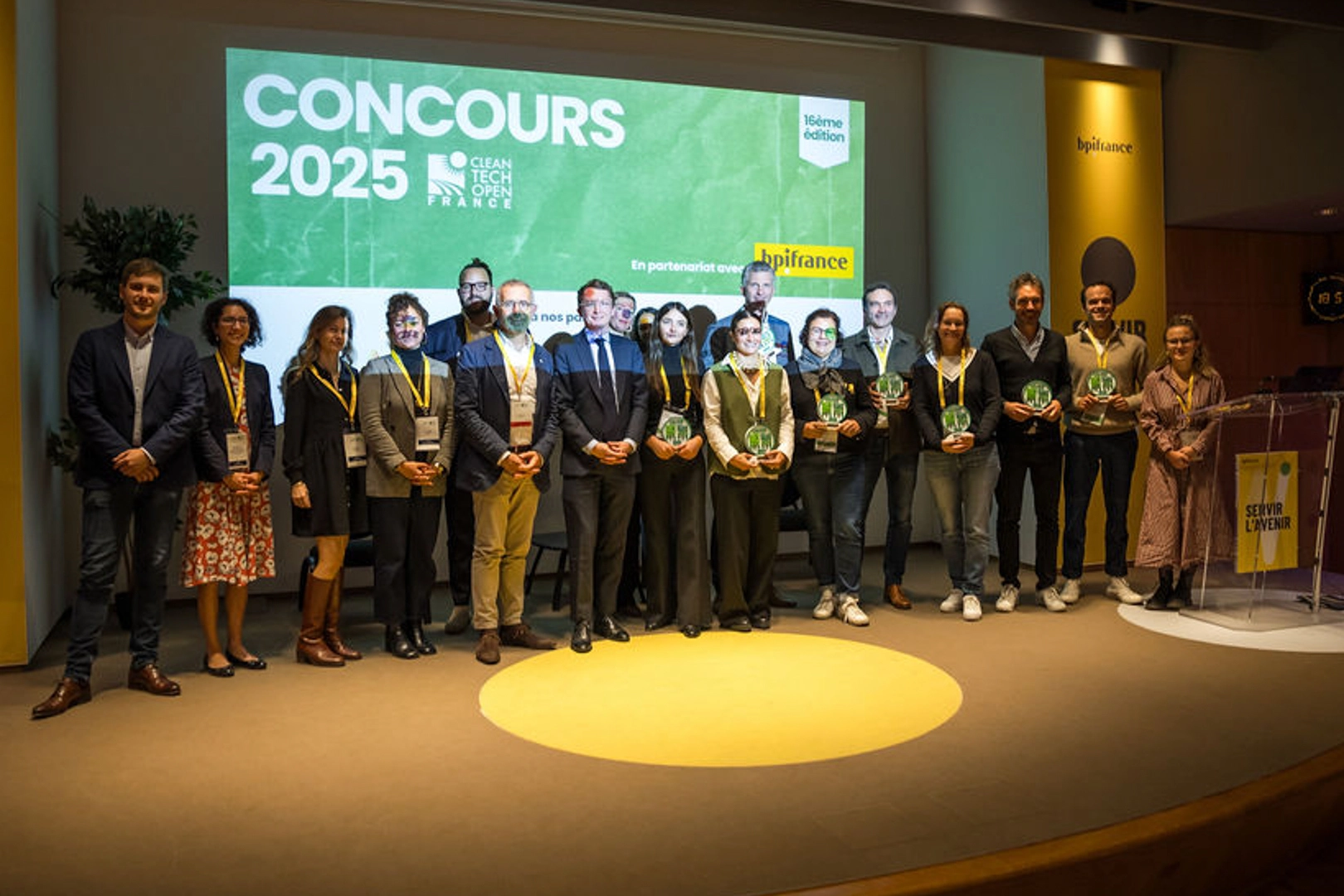 La 16ᵉ finale du CleanTech Open France s’est tenue en septembre dernier au siège de Bpifrance. Parmi près de 200 candidatures et plus de 1 500 évaluations en ligne, seuls 8 lauréats ont été sélectionnés pour récompenser les innovations les plus prometteuses en matière de transition écologique et énergétique.